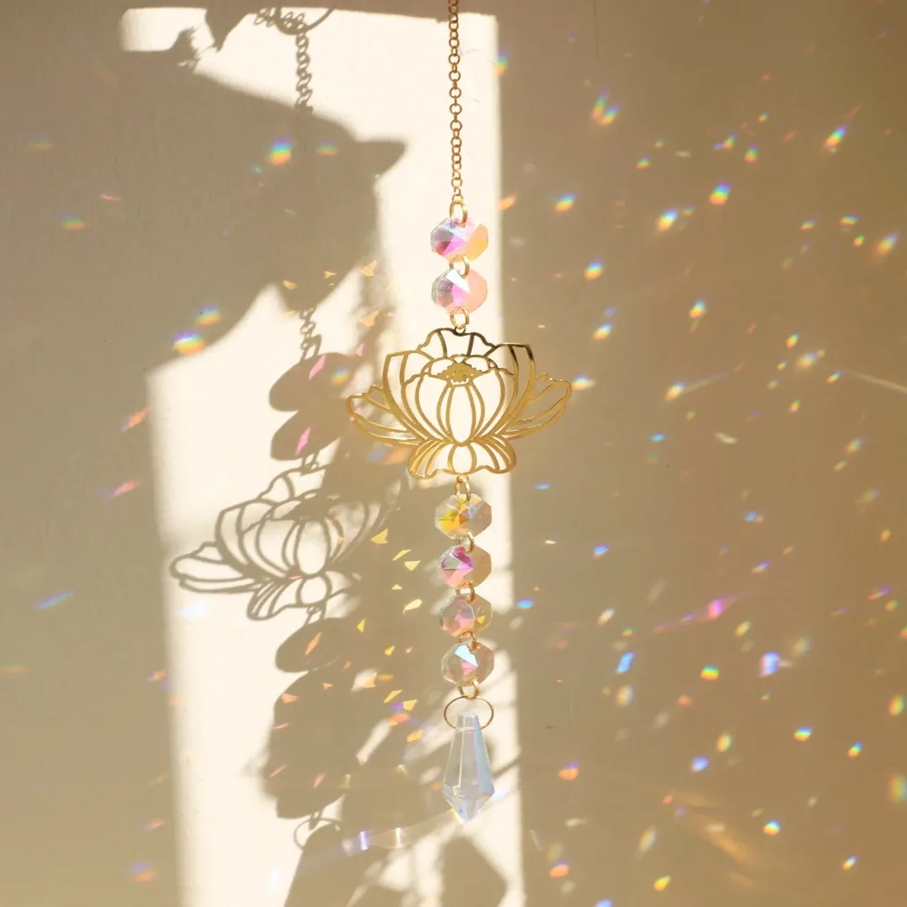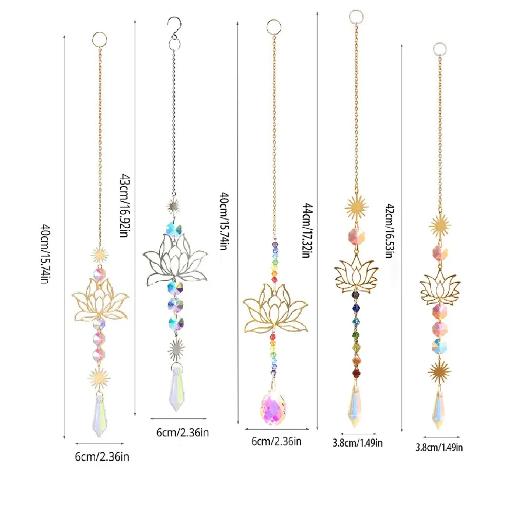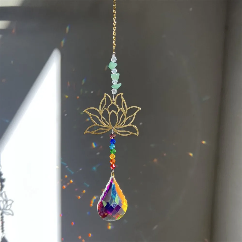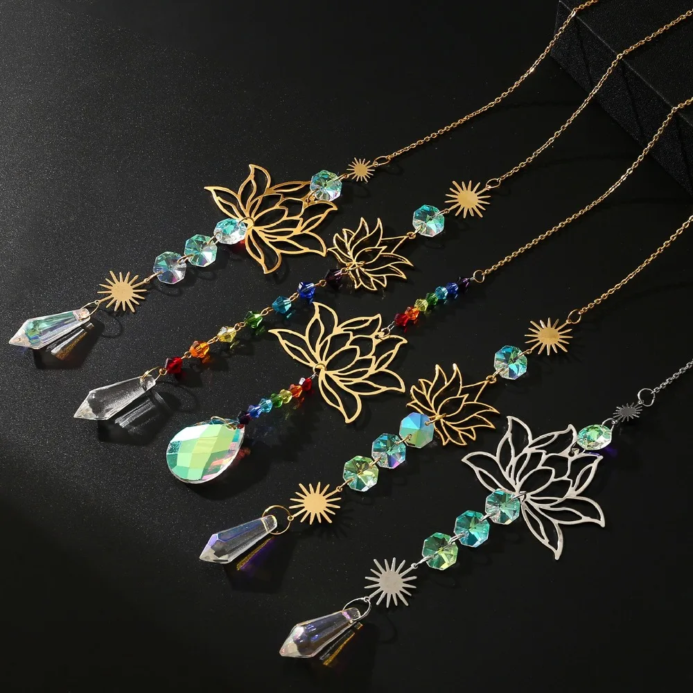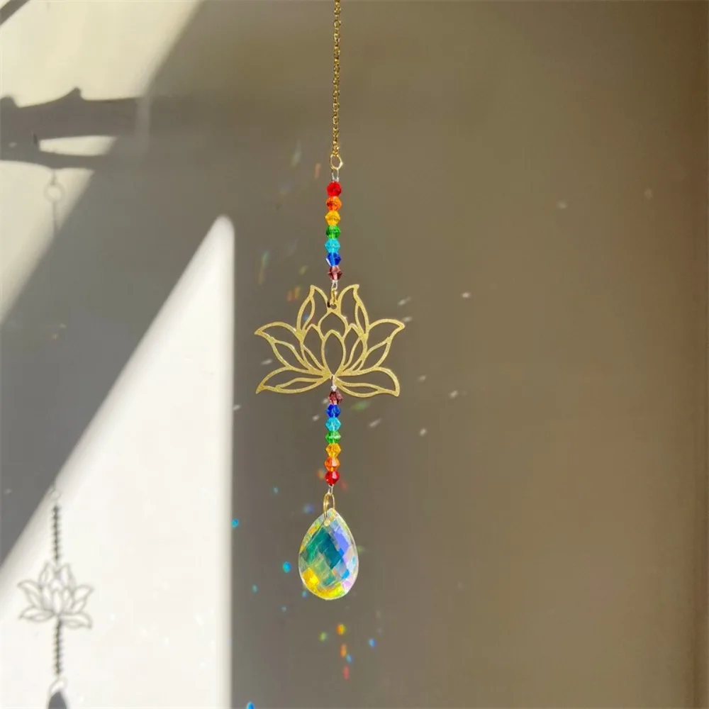 Crystal Lotus Hanging Wind Chimes Stained Glass Suncatcher Sun Catcher Room Pendant Decor Balcony Yard Aesthetic Landscape