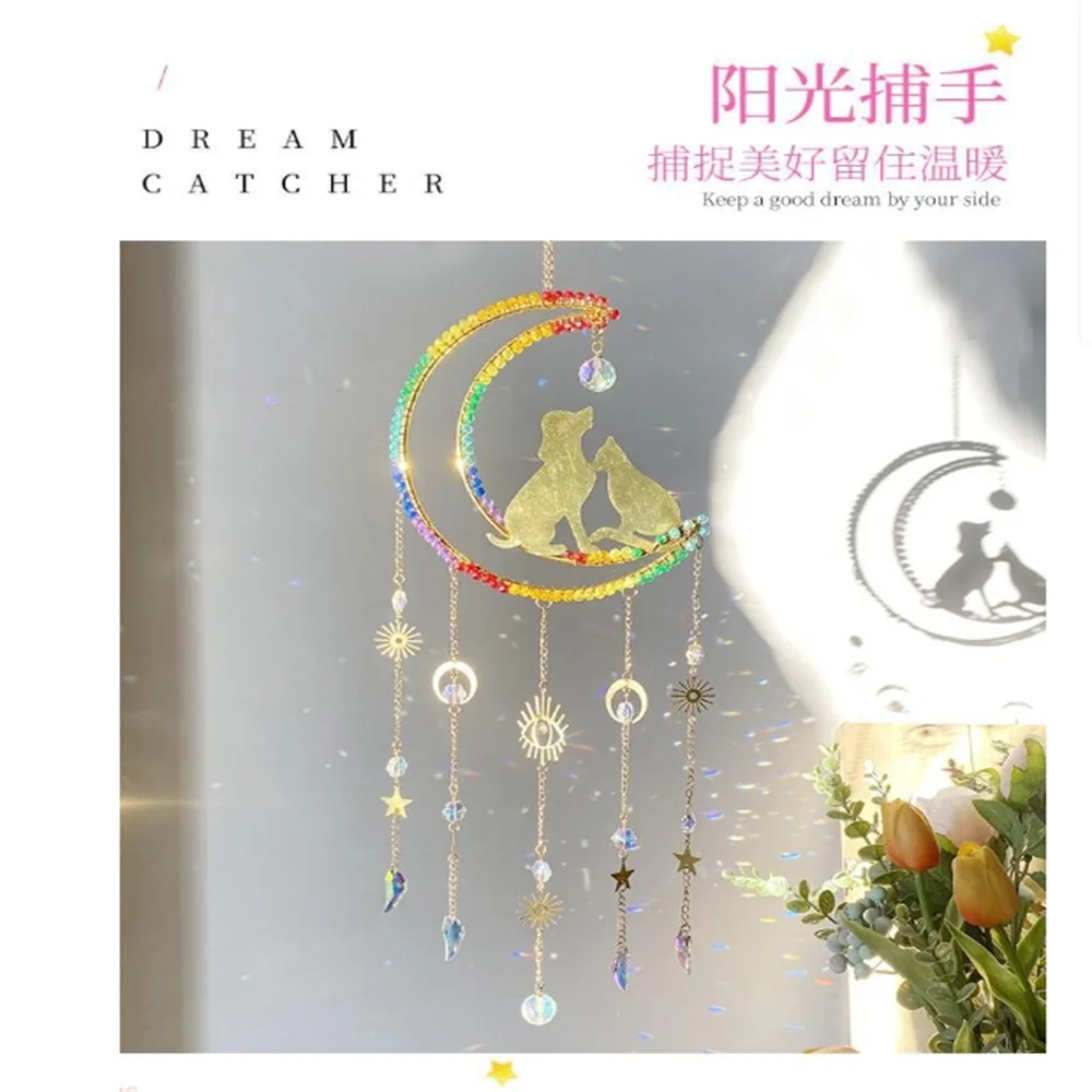 Dreamcatcher Suncatcher Crystal Sun Catcher Indoor Window Prism Ball Moon Rainbow Wind Chimes Car Hanging Garden Decoration Gift